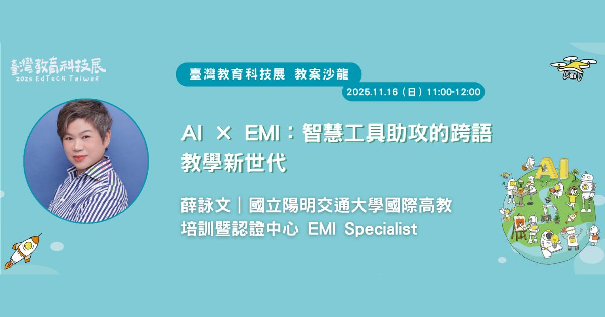 🎯11/16(日) 13:00 AI X EMI : 智慧工具助攻的跨語教學新世代 講師: 國立陽明交通大學 薛詠文